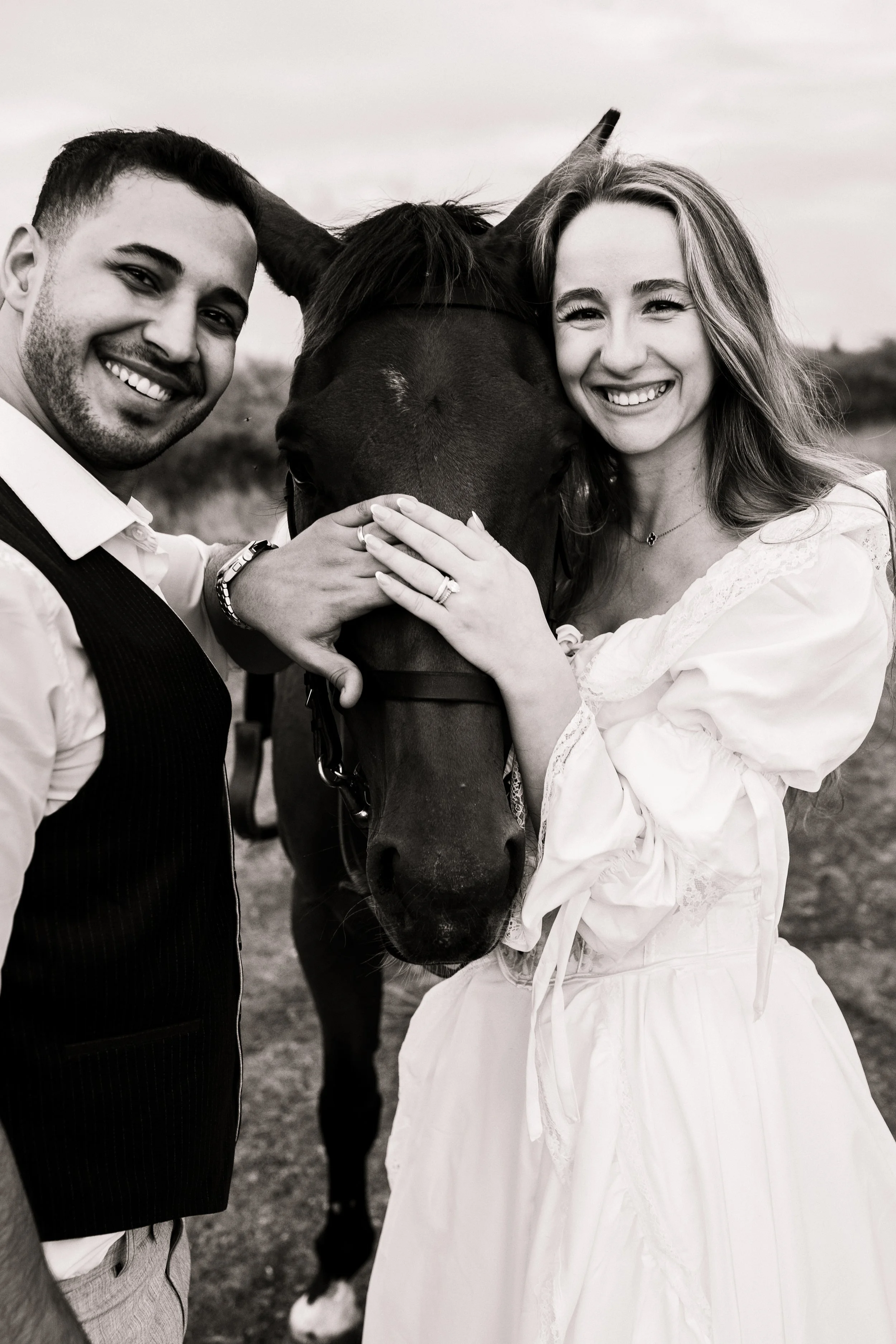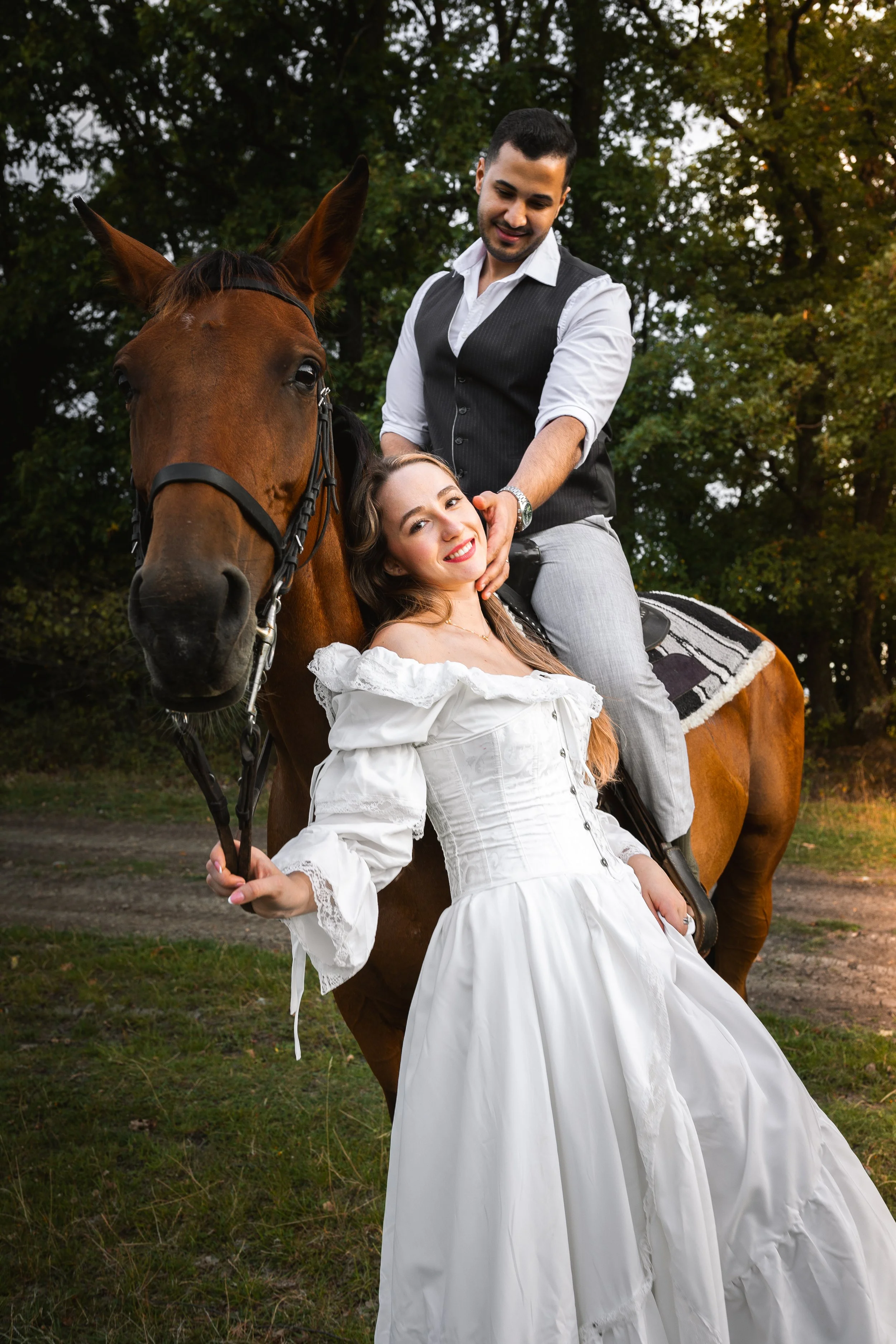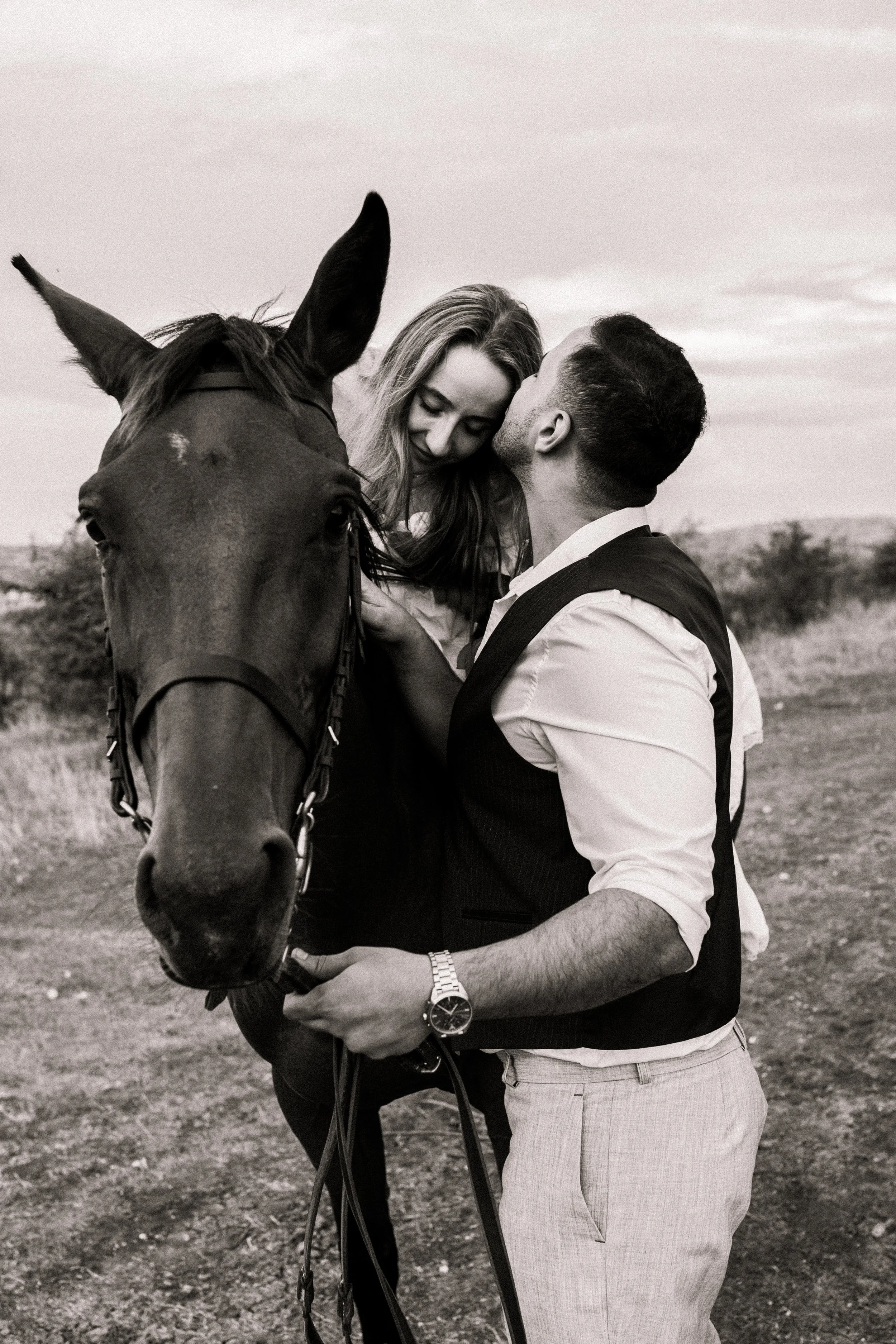 Golden hour romance with horses