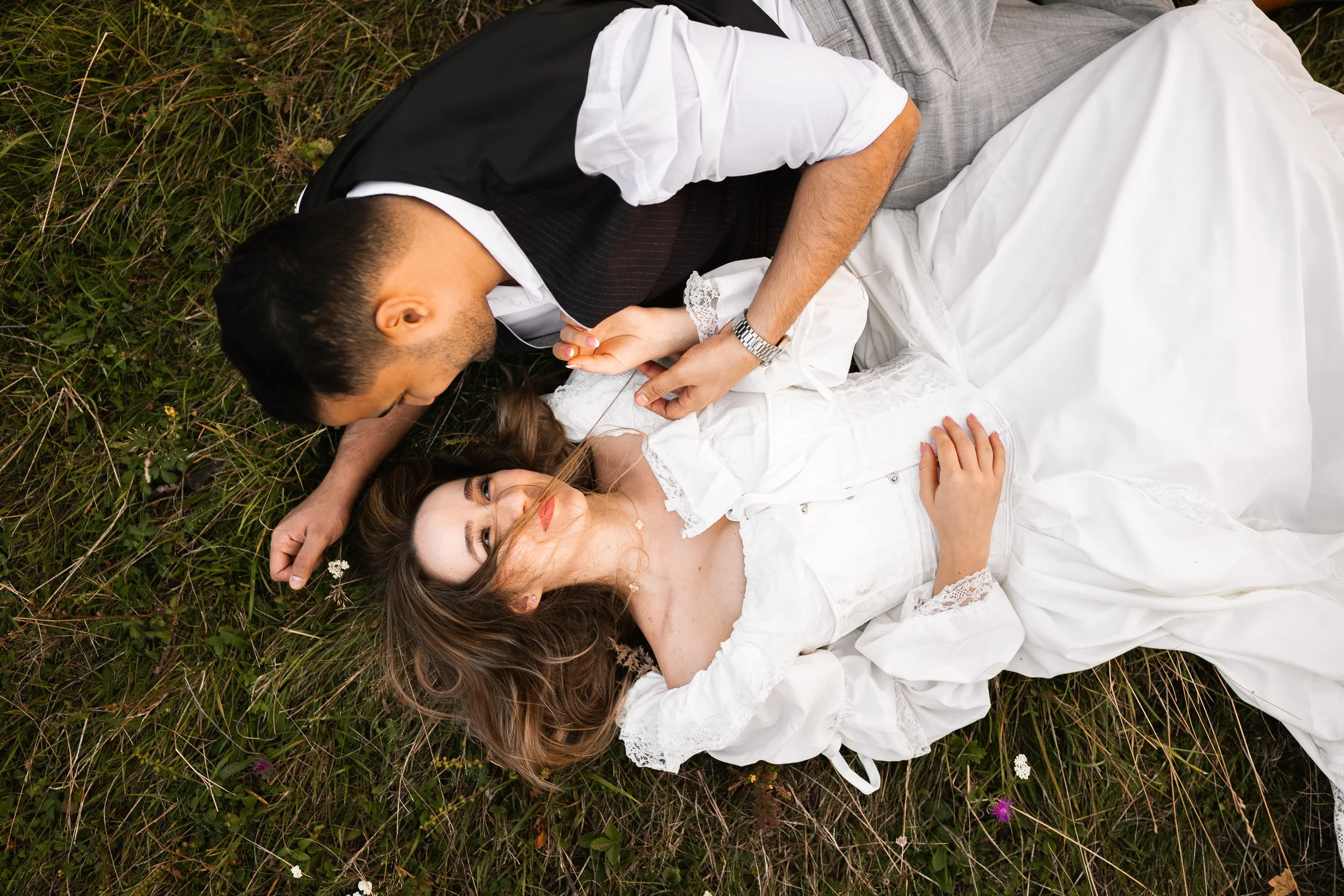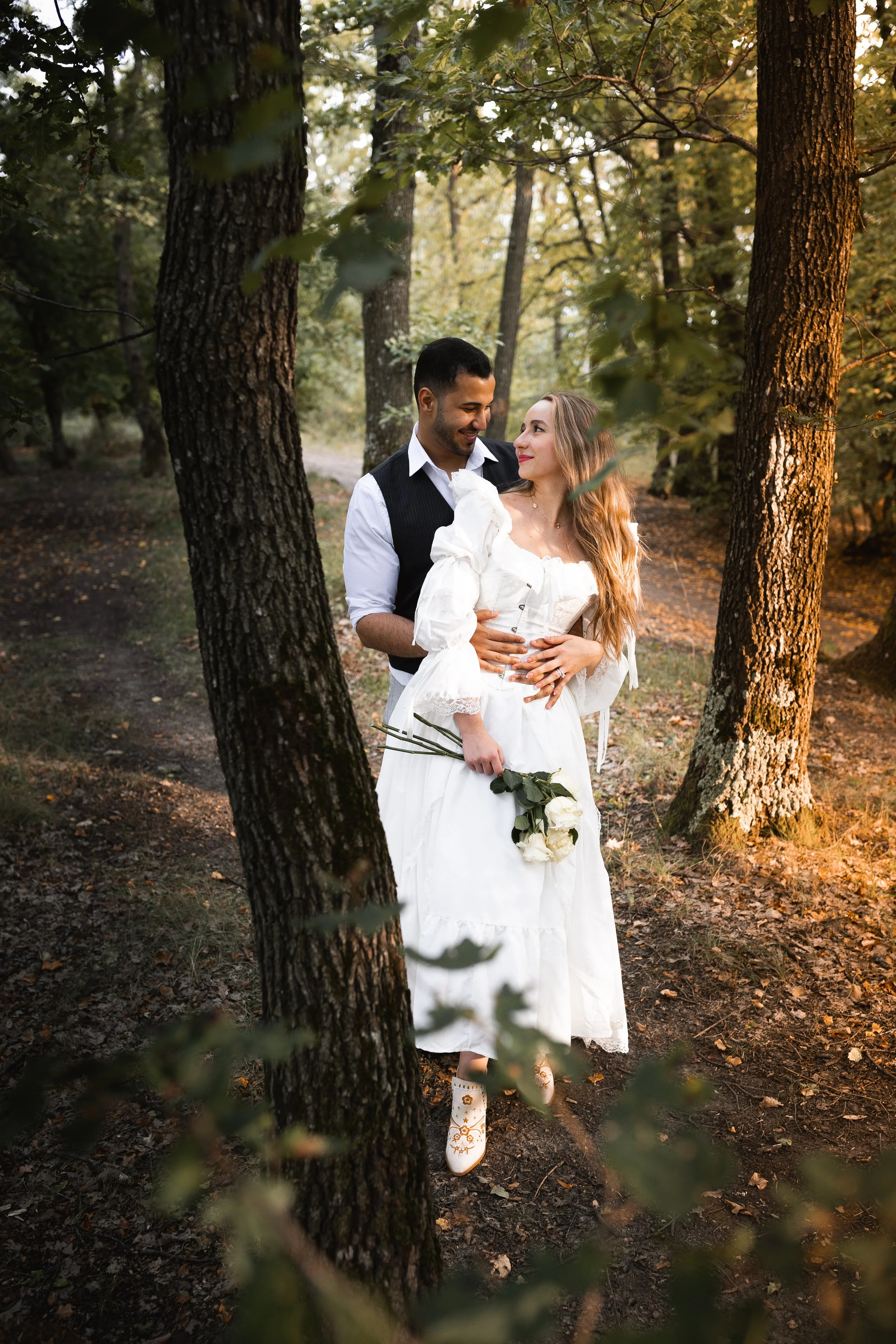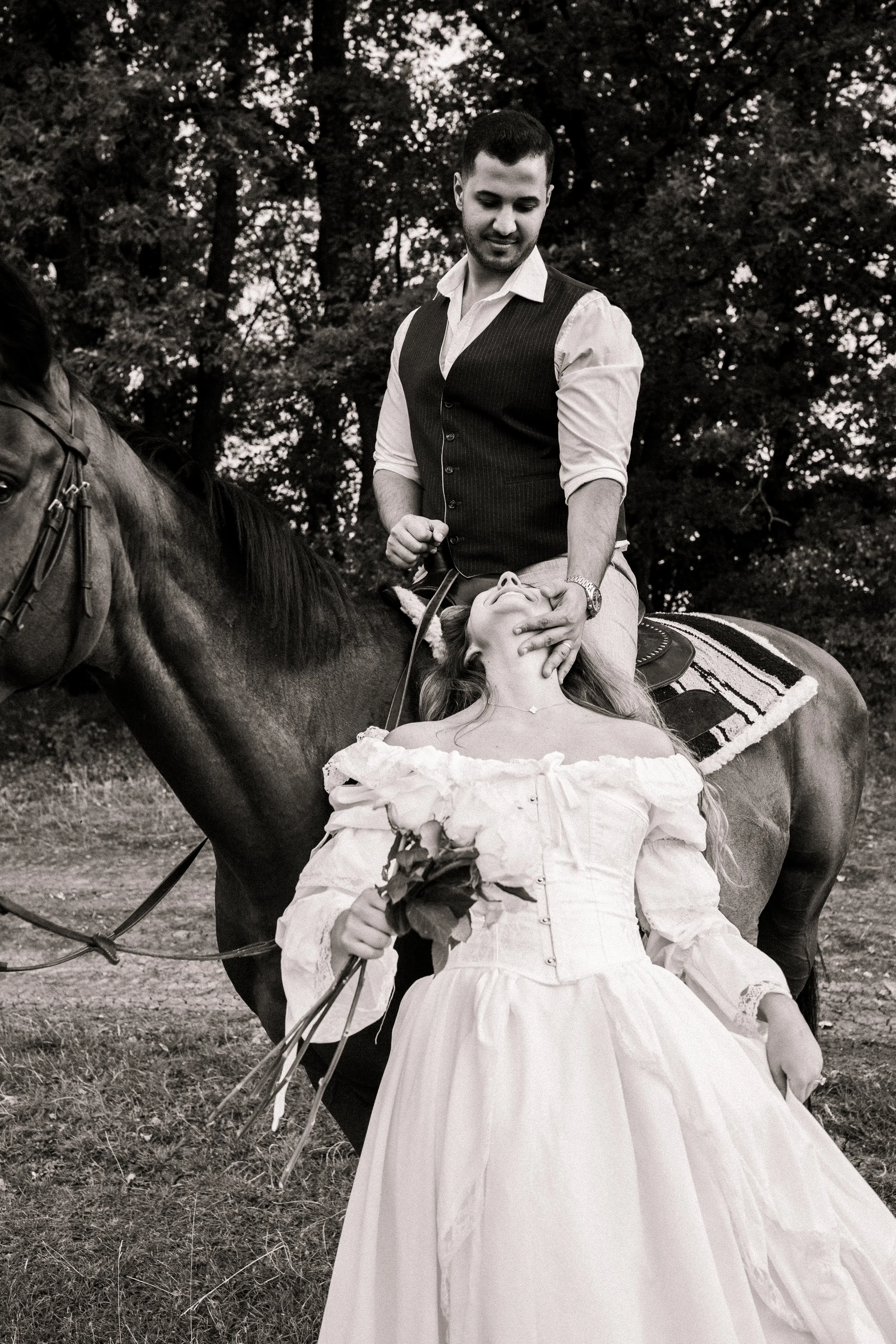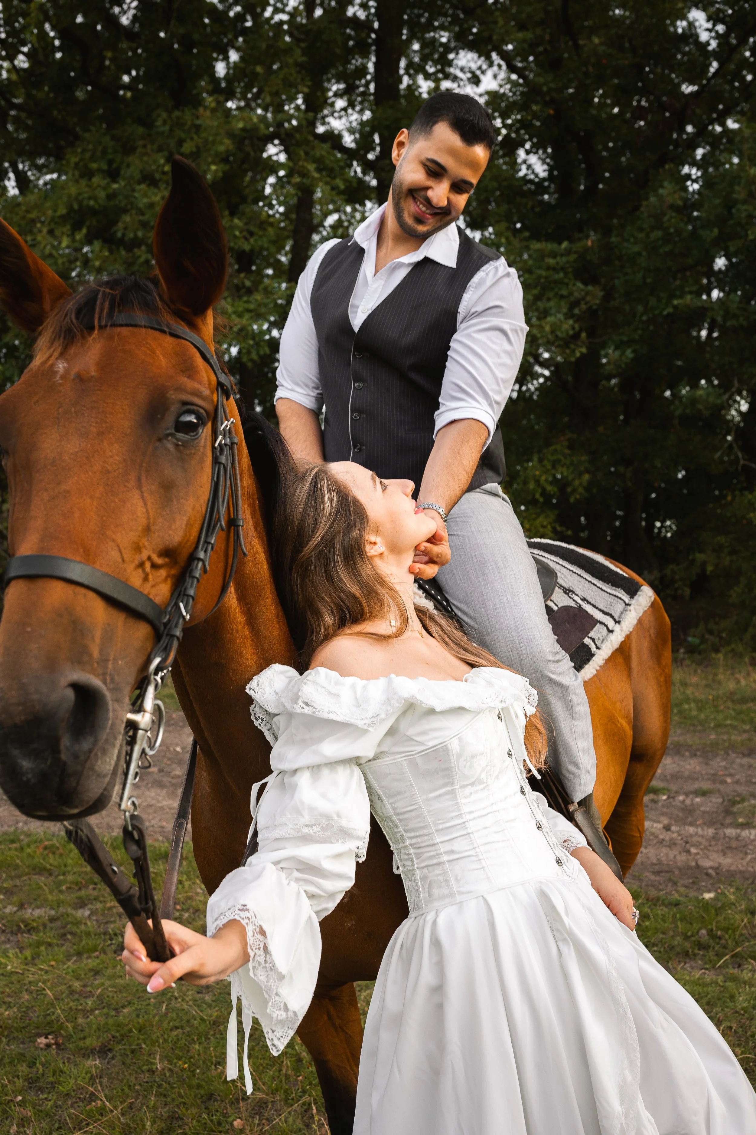 Golden hour romance with horses